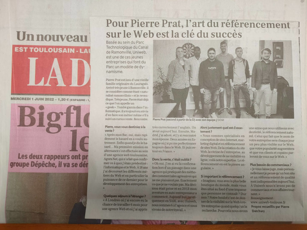 Le quotidien régional “La Dépêche du Midi” a souhaité mettre en avant le dynamisme des entreprises implantées au sein du Parc Technologique du Canal de Ramonville Saint Agne (31520), dans l’est de Toulouse. C’était l’occasion pour nous de présenter Uniweb et ce qui constitue son expertise et son cœur d’activité : le référencement sur le Web et la création de sites Internet.